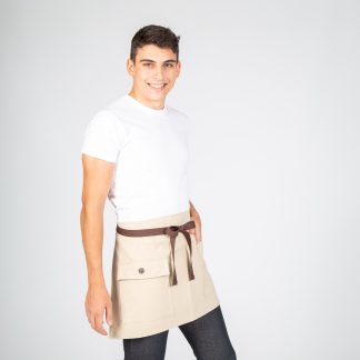 Avental com Peito Bege com Alça de Couro 82x72CM