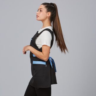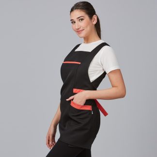 Avental duplo com um bolso à frente na zona da anca.