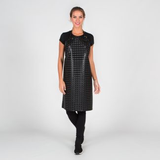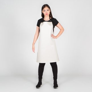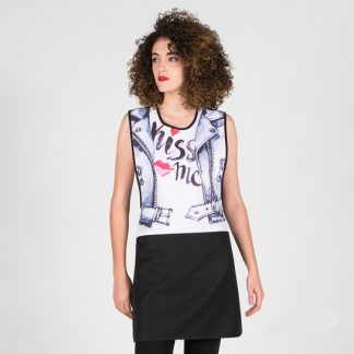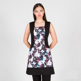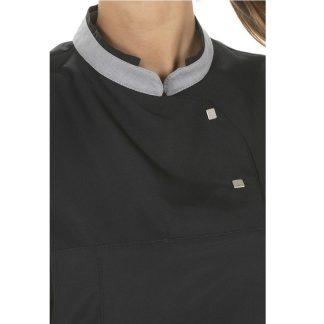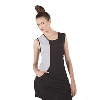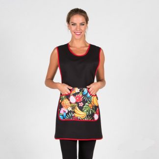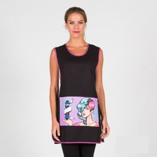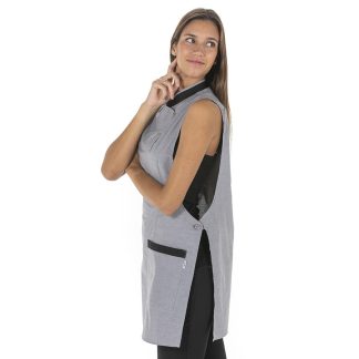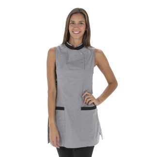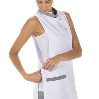 Avental bata para serviços e estética. Gola de padre e botões de enfeite com debrum em cetim. Preso com fitas. Possui dois bolsos inferiores. Comprimento 77 cm. Disponível em branco (700), preto (725) e fúcsia (768). Composição: 100% Poliester Propostas: alimentação, cabeleireiro, livraria, lojas de brinquedos, pastelaria, cafetaria, comércio em geral.