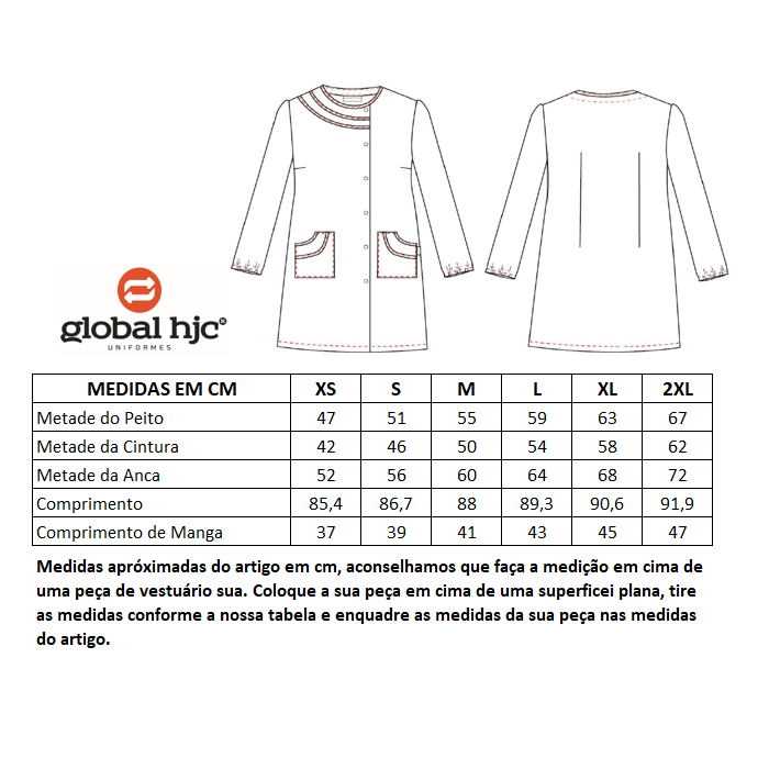 Bata de senhora manga comprida com elástico no punho, dois bolsos na zona da anca.
