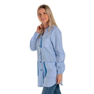 Feito em tecido combinado de xadrez azul marinho.
