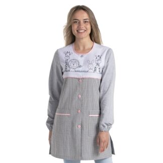 Bata S/ Mangas Educadora Texano Bordado Flores