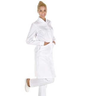Bata de senhora com manga comprida. Contraste nos ombros em tecido Aerosilver,