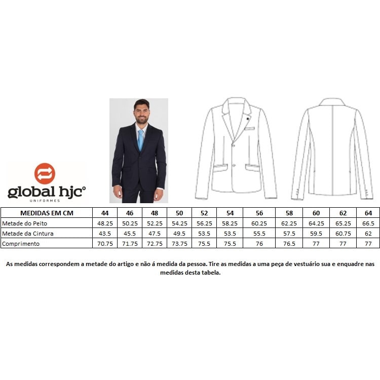 Peça confeccionada em tecido COMFORT (300 gr/m²) 54% Poliéster – 44% Lã – 2% Lycra, que confere à peça maior conforto, acabamento fino e leve, toque macio, resistência ao amassado e facilidade de engomar.