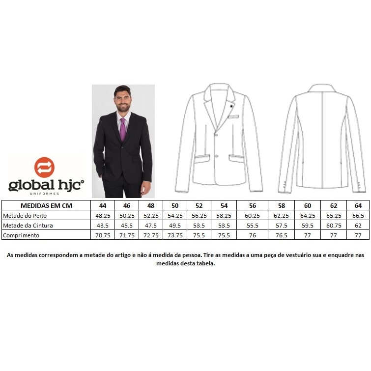 Peça confeccionada em tecido MAXIMA (330 gr/m²) de 54% Poliéster – 44% Lã – 2% Lycra, proporcionando maior conforto, resistência ao amassado, fácil engomar e textura macia e quente.