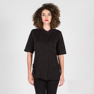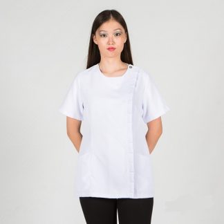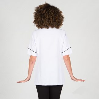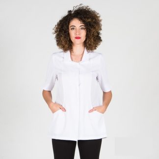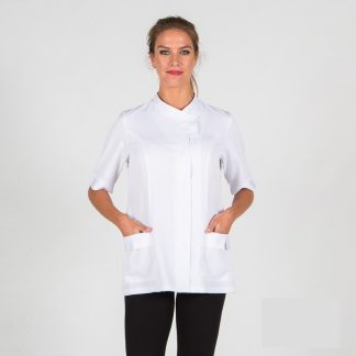 Túnica de homem, dois bolsos um de cada lado na zona da anca em tecido Microfibra e aberturas larerais. Tecido antibacteriano e repelente a líquidos.