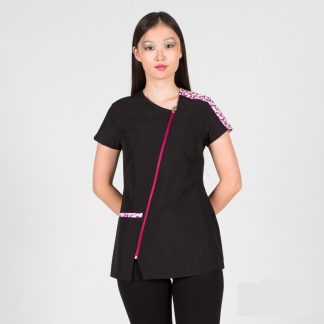 Túnica de homem, dois bolsos um de cada lado na zona da anca em tecido Microfibra e aberturas larerais. Tecido antibacteriano e repelente a líquidos.