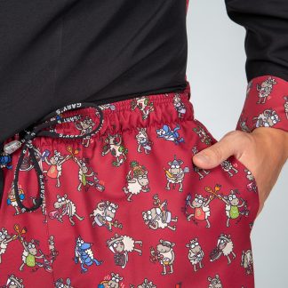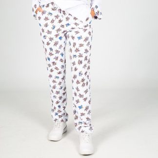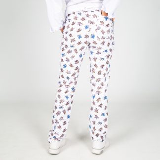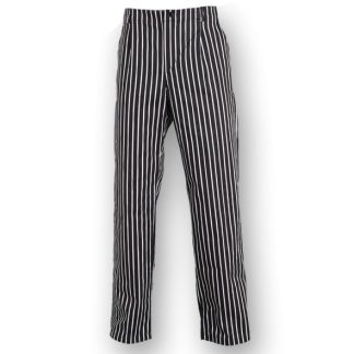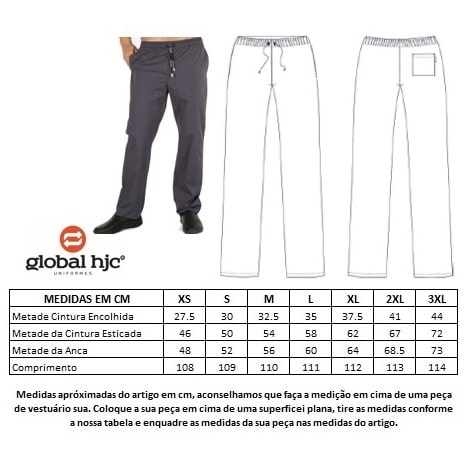 Calça unissexo para cozinheiro. Dois bolsos embutidos na costura da calça na parte lateral. Elástico á volta da cintura.