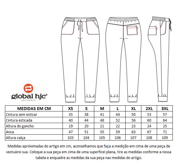 Tecido Microfibra elástica, com punho na perna da calça.