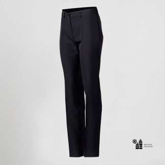 Possui dois bolsos tipo jeans no quadril, outros dois bolsos na parte de trás e um bolso para relógio. Confeccionada em 96% Poliéster – 4% Elastano BI-ELÁSTICO SARJA, um tecido elegante que mantém sua forma após a lavagem sem perder sua adaptabilidade ao movimento.
