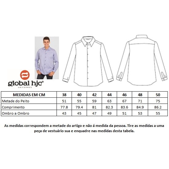 Camisa de homem de manga comprida. Feito em olho de perdiz de 70% Poliéster – 30% Algodão.