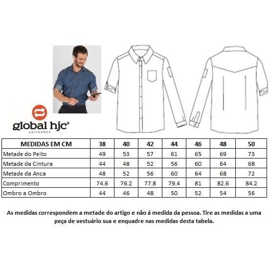 Camisa de homem slim fit com maga regulavél. Bolso no peito e bolso na manga para canetas. Este modelo é feito em popeline ganga lavada que proporciona uma aparência desgastada dando como resultado uma peça muito actual. Comprimento aproximado 77 cm.