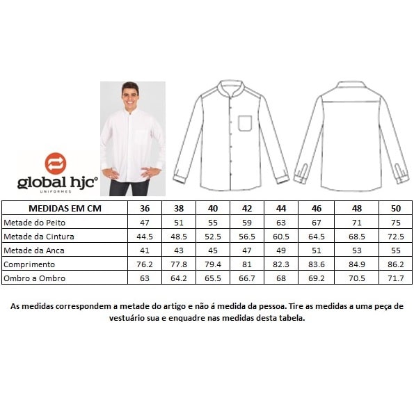 | Tamanhos | 36, 38, 40, 42, 44, 46, 48, 50 |