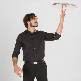 Camisa de Senhora slim fit com gola de padre. Botão na manga regulável.. Este modelo é feito em linho/algodão dando como resultado uma peça muito actual.