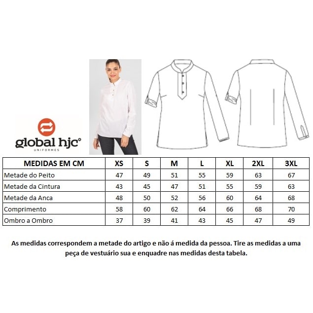 | Tamanhos | XS, S, M, L, XL, 2XL, 3XL |