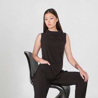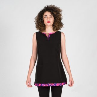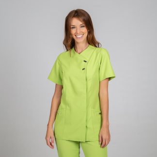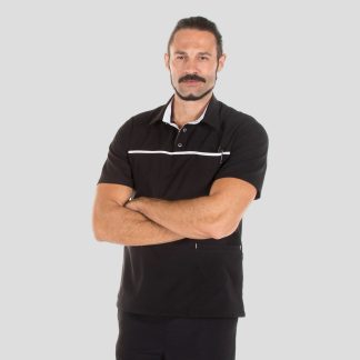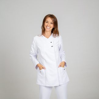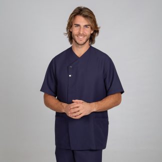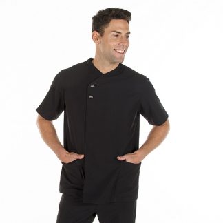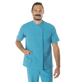 Túnica de homem com manga comprida, aberta ao lado com molas ocultas, dois bolsos um de cada lado na zona da anca em tecido Microfibra.