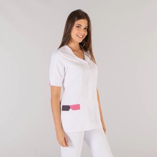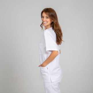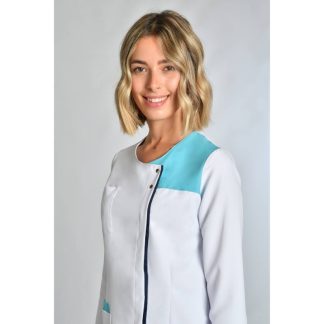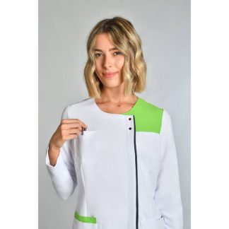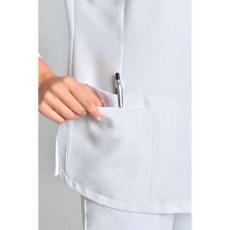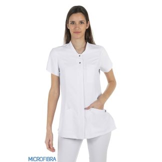 Túnica de Senhora com manga comprida, aberta ao lado com molas ocultas, dois bolsos um de cada lado na zona da anca em tecido Microfibra.