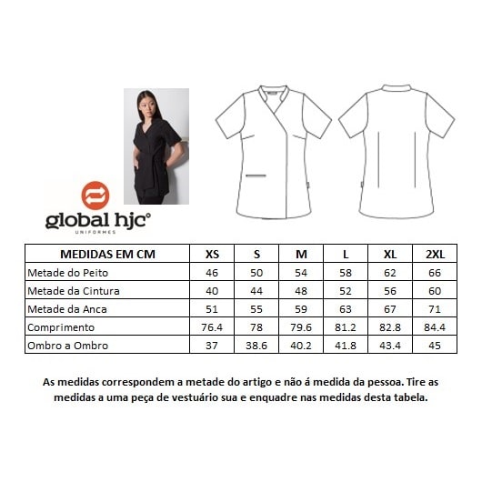 Túnica de Senhora manga curta, modelo senhora traçada bolso do lado direito.