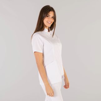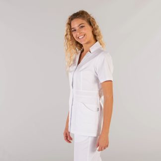 Casaca de manga curta de Senhora aberta á frente com molas.