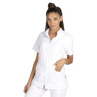 Com 2 bolsos na zona da anca e um no peito do lado esquerdo.