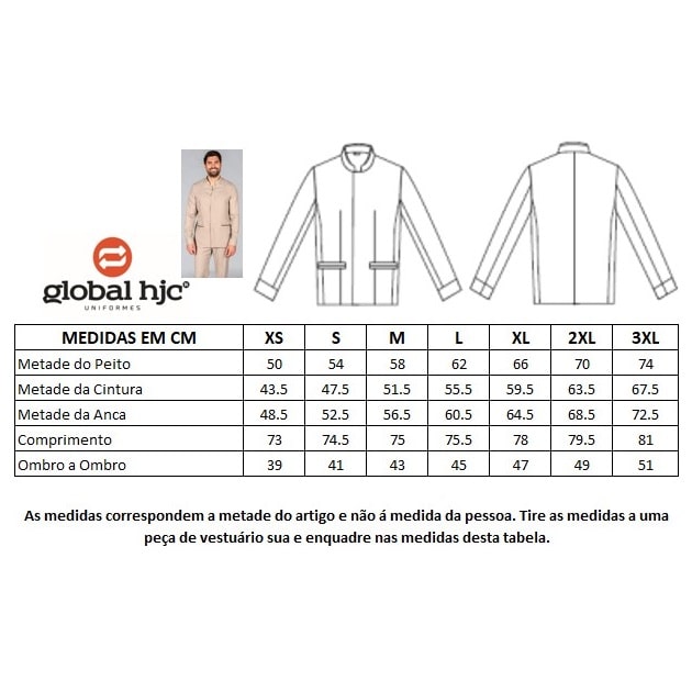 Casaco de homem de manga comprida com gola mao, dois bolsos laterais, fecho de botões de pressão oculto e punhos abotoados. Peça semi-ajustada, com dardos na frente e nas laterais. Confeccionada em SARJA cor de areia (165gr/m²) de 100% POLIÉSTER RECICLADO, assim nos encontramos diante de uma peça que respeita um meio ambiente sustentável, dentro da linha NATUREWEAR de Uniformes Garys.