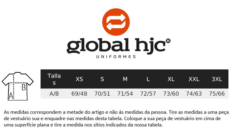 | Tamanhos | XS, S, M, L, XL, 2XL, 3XL |