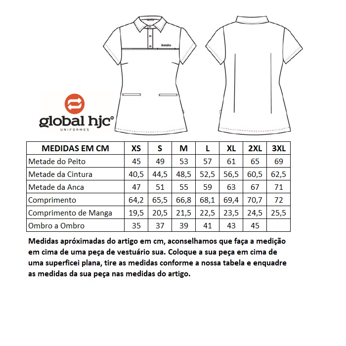 Polo de senhora com um bolso no peito do lado esquerdo e dois na zona da anca. Gola com contraste interior e 3 molas. Modelo semi-justo em tecido Microfibra ELASTIK.
