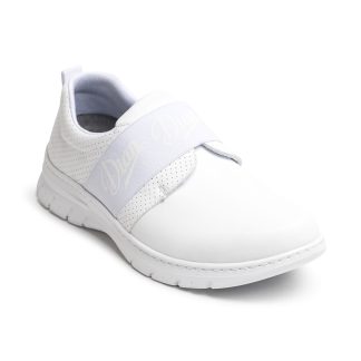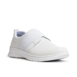 Sapato com fecho de cadarço, antiderrapante com elevado coeficiente de secagem e humidade, com saliências e ranhuras na sola para facilitar a evacuação de líquidos, evitando escorregar em pisos molhados, parte superior em microfibra respirável D’COVER OEKOTEX ® e lavável a 40º com acolchoamento no interior.