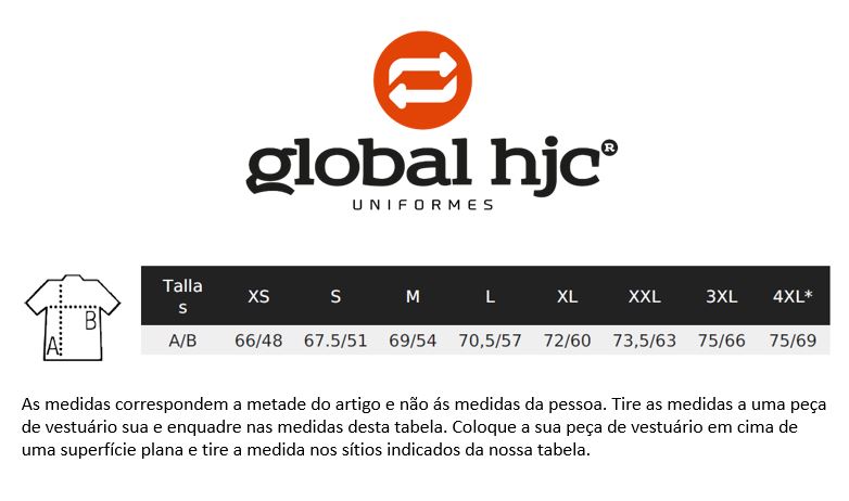 | Tamanhos | XS, S, M, L, XL, 2XL, 3XL |