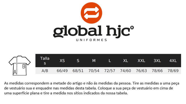 | Tamanhos | XS, S, M, L, XL, 2XL, 3XL, 4XL |