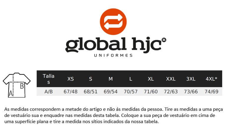 | Tamanhos | XS, S, M, L, XL, 2XL, 3XL |