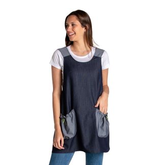 Túnica de senhora sem mangas, um bolso do lado direito na zona da anca.